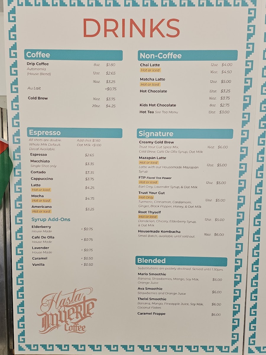 Patrons rave about the comforting vibes and genuine service, noting the importance of supporting local businesses. Many guests have highlighted the delicious food, with recommendations for empanadas and avocado toast, enhanced by local art that adorns the space. The welcoming environment and commitment to community make Hasta Muerte Coffee not just a café, but a safe haven.